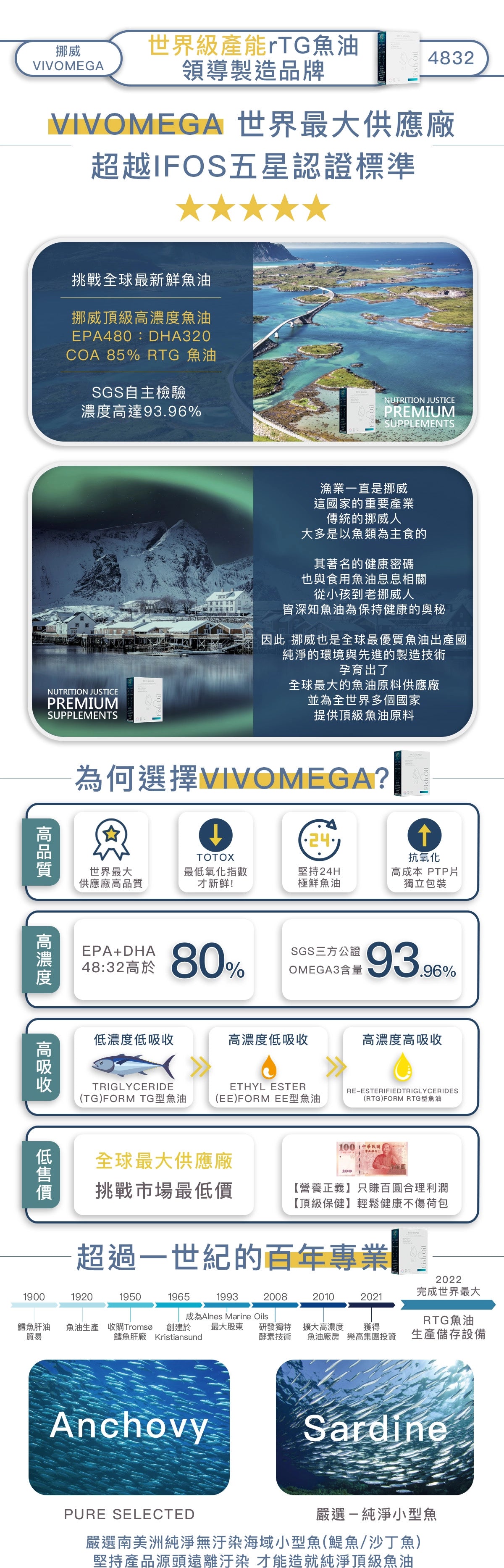 挪威VIVOMEGA 世界級產能|全球第一大廠 高濃度頂級rTG魚油